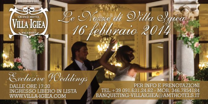 Le nozze di Villa Igiea – Exclusive Weddings Un pomeriggio dedicato a voi sposi. Il Grand Hotel Villa Igiea ha il piacere di invitarvi all’Afternoon Tea che si terrà Domenica 23 Novembre alle 17h. Durante l’evento avrete la possibilità di vedere diversi allestimenti e parlare con i nostri Specialist de Mariage mentre degustate il buffet…