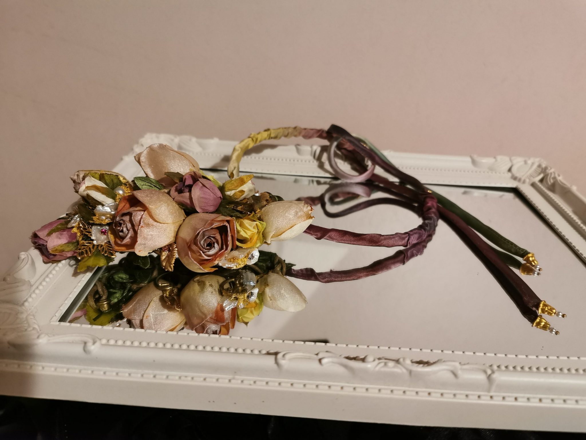 Dai cromatismi neutri e sobri..i gioielli lasciano spazio all’eleganza… in un mix di materiali poveri (Ottone) insieme a perle,sete, cristalli e foglia oro ..