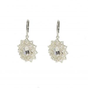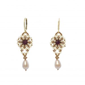 Delicate crochet weave composed of fancy fantasy embellished with small and delicate cream colored cotton flowers, made entirely by hand, beaded application. Great jewel buckle