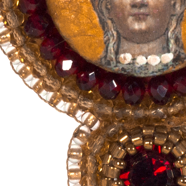 Ceramic stone, hand-painted with the face of Queen Constance of Aragon.