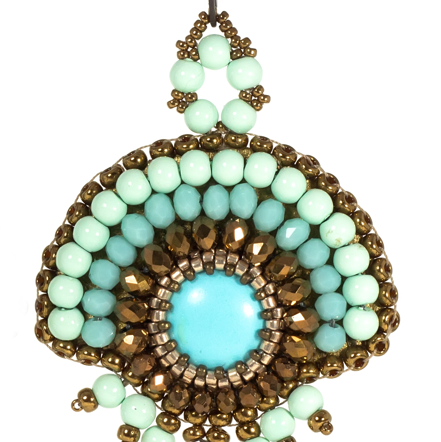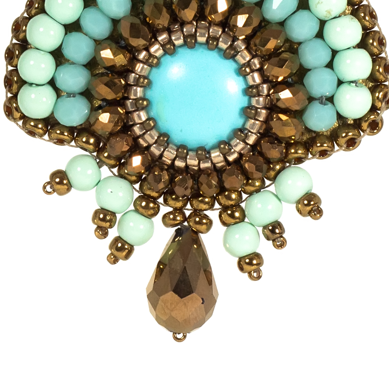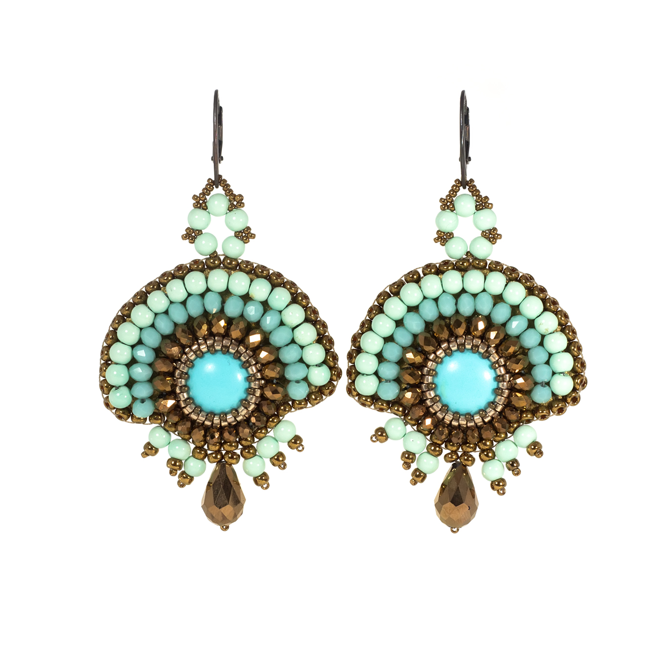 Stone turquoise pasta, crystals, earrings finished at the back with cloth Alcantara.