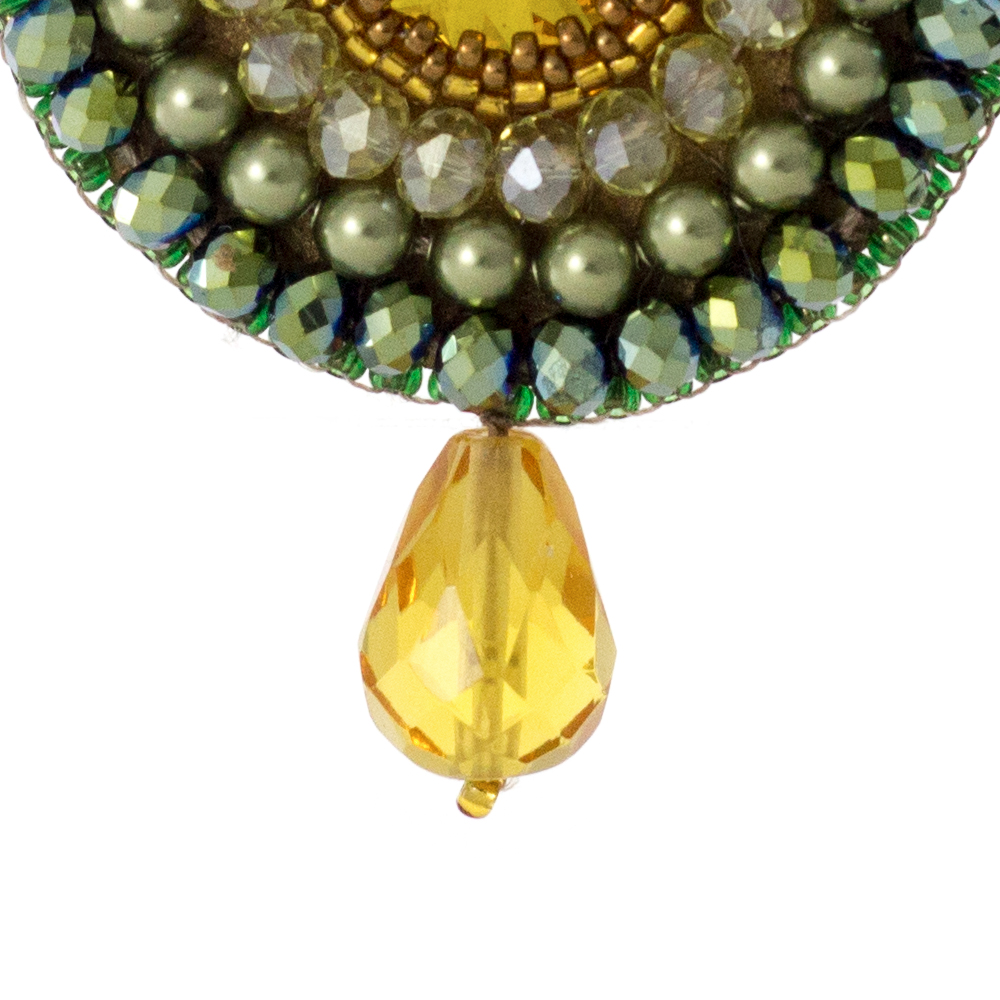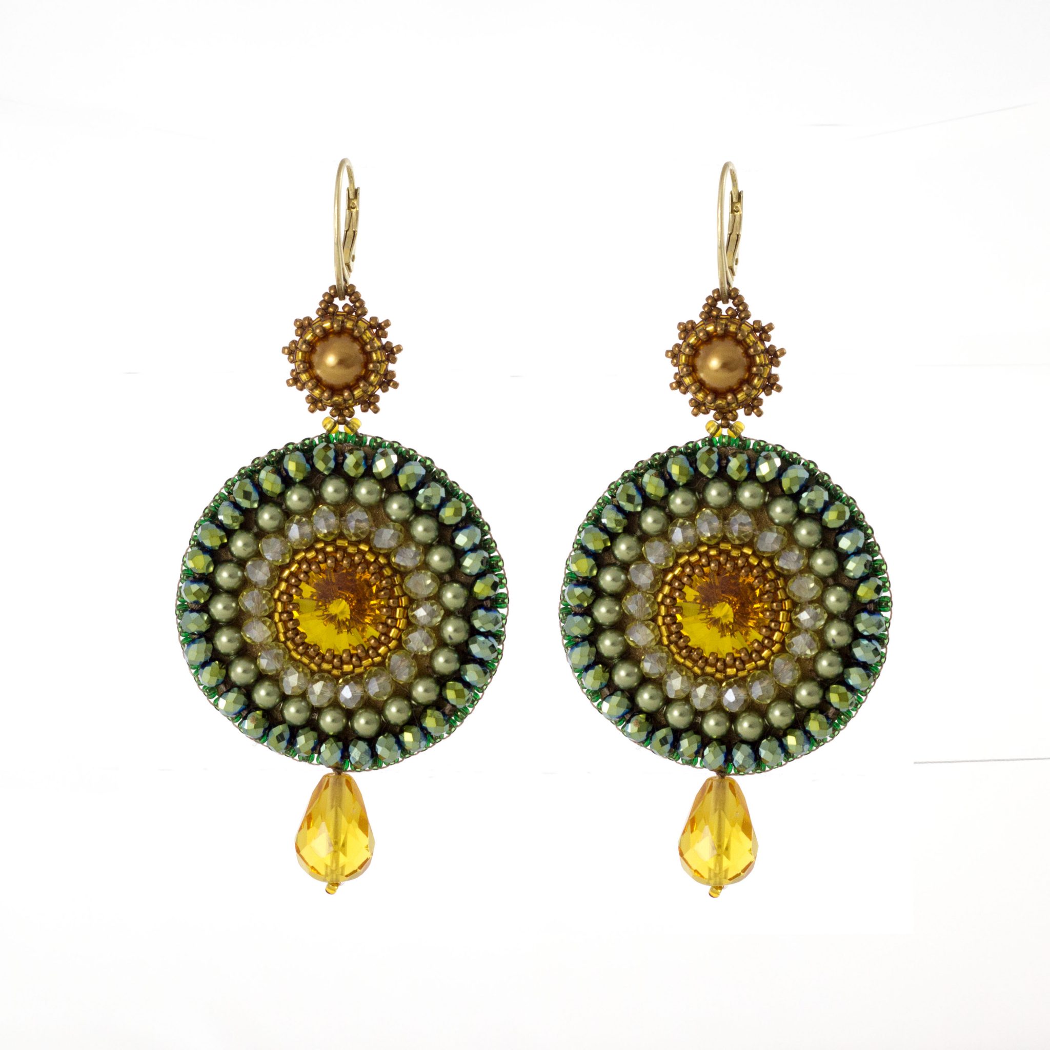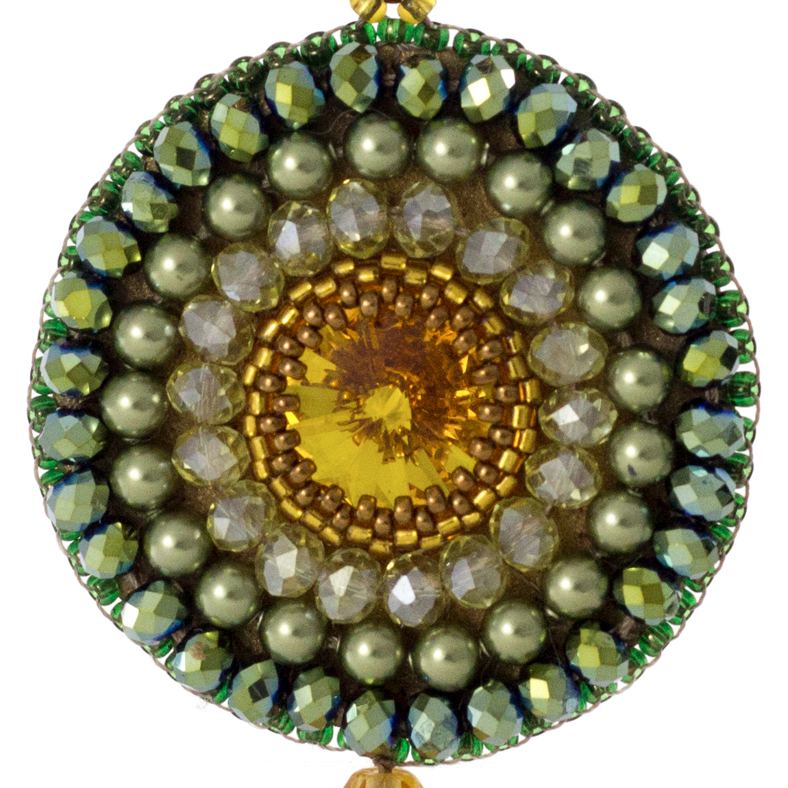 Swarovski stones, micro beads, crystals.