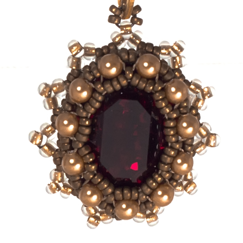 Cabochon swarovski crystal, micro beads and swarovski pearls.