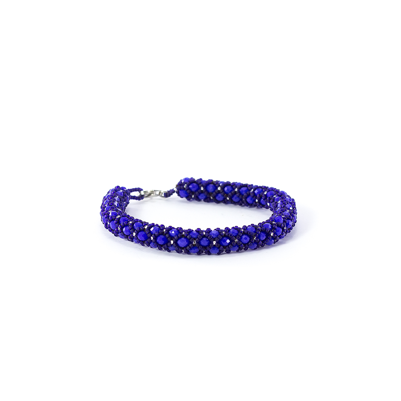 Bracciale spirale realizzato con cristalli, micro perle ed elementi d’argento.