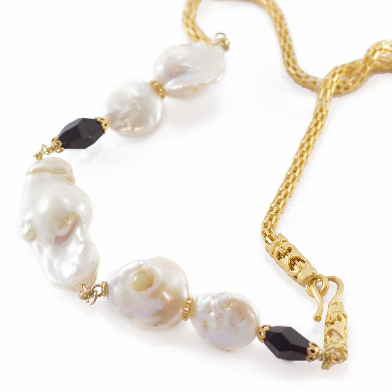 Collana Scaramanthia di ottone placcato oro con perle scaramazze e swarosvki.