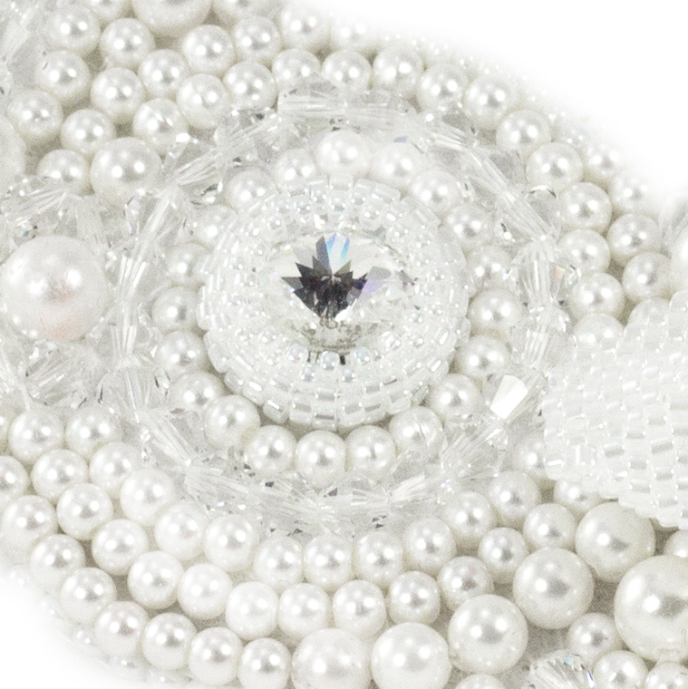 Cristalli e rivoli Swarovski, micro perle, cristalli bicono Swarovski e perle.