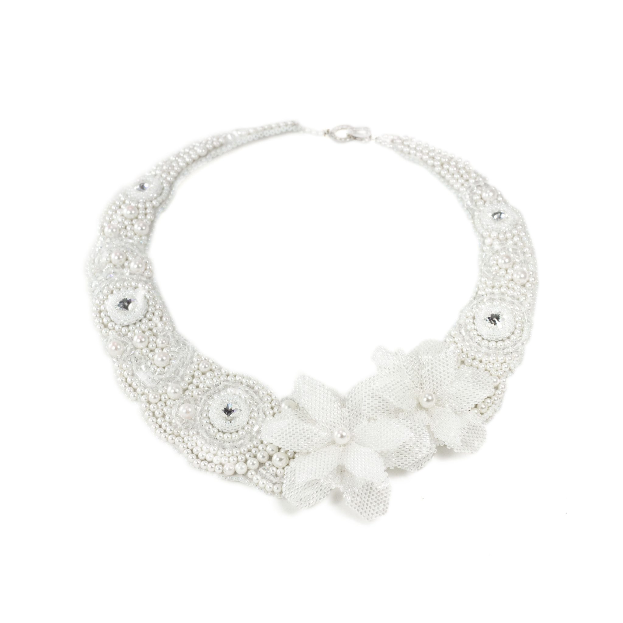 Colletto semi rigido realizzato con la tecnica dell’embroidery.