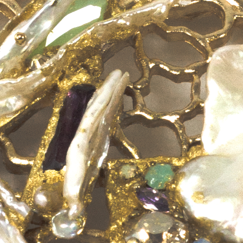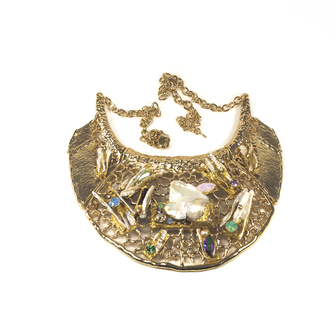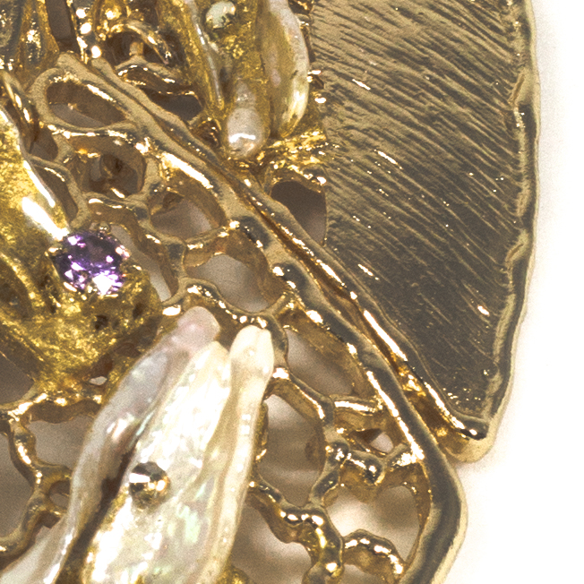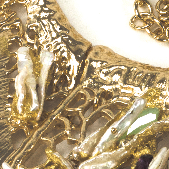 impreziosito con perle scaramazze, cristalli e Swarovski incastonati su foglia oro 23,75kt.