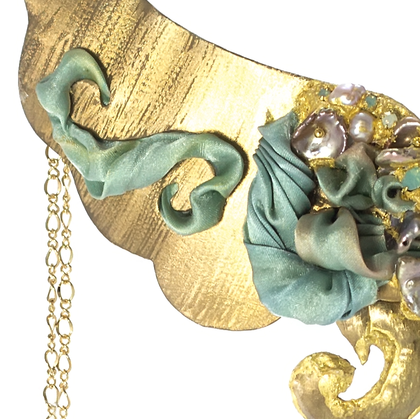 Colletto di ottone galvanizzato con seta shibori,
