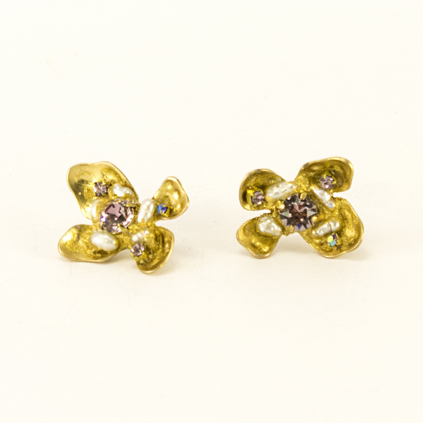 Perle di fiume e swarovski incastonati su foglia oro puro 22kt.