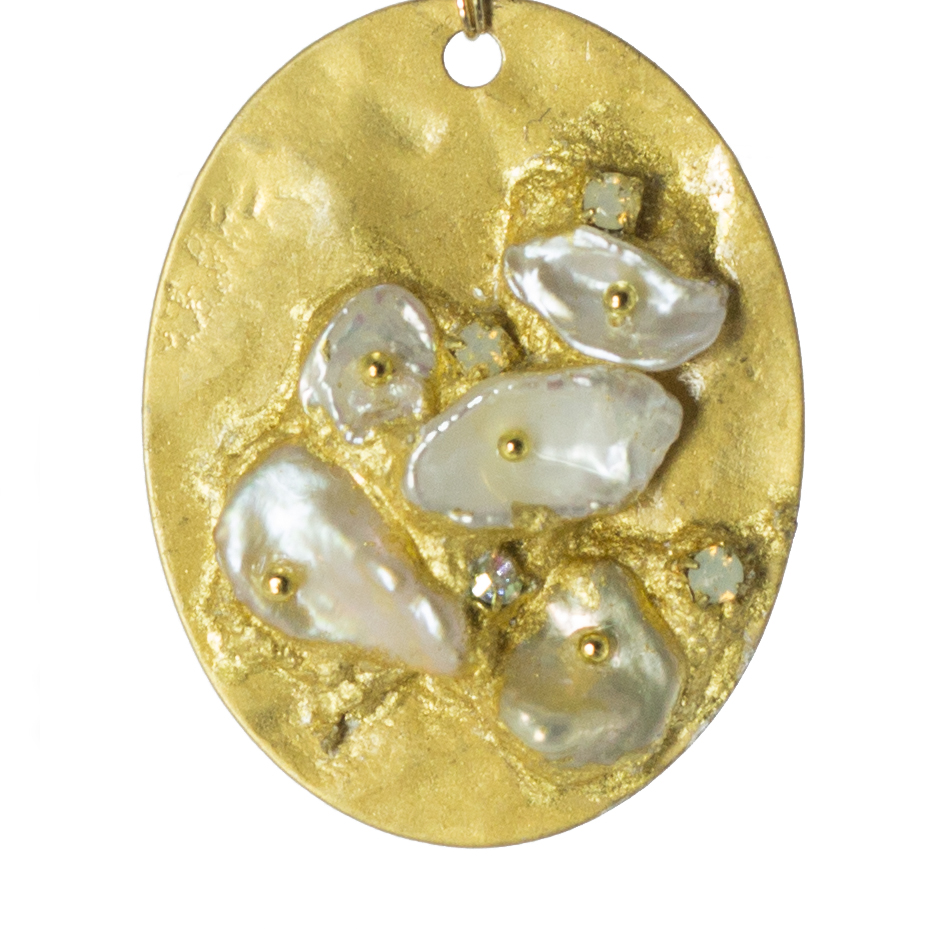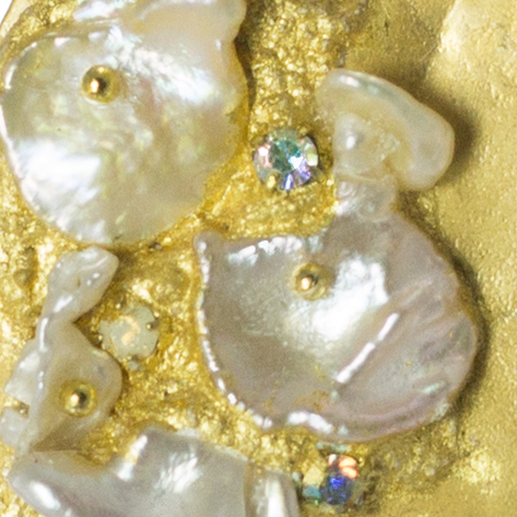 perle barocche d’acqua dolce incastonate su foglia oro puro 22 kt,