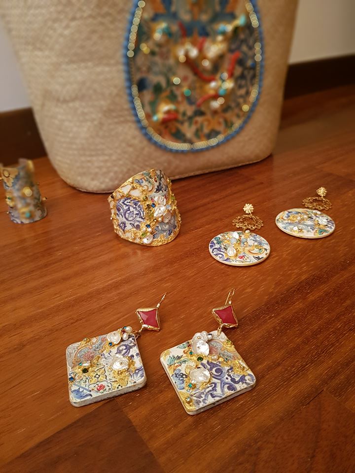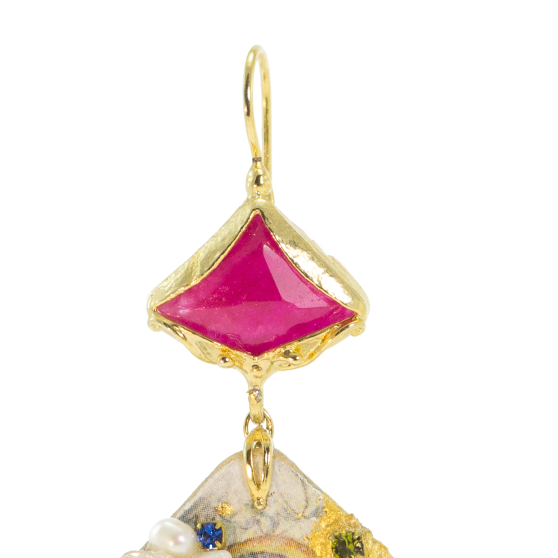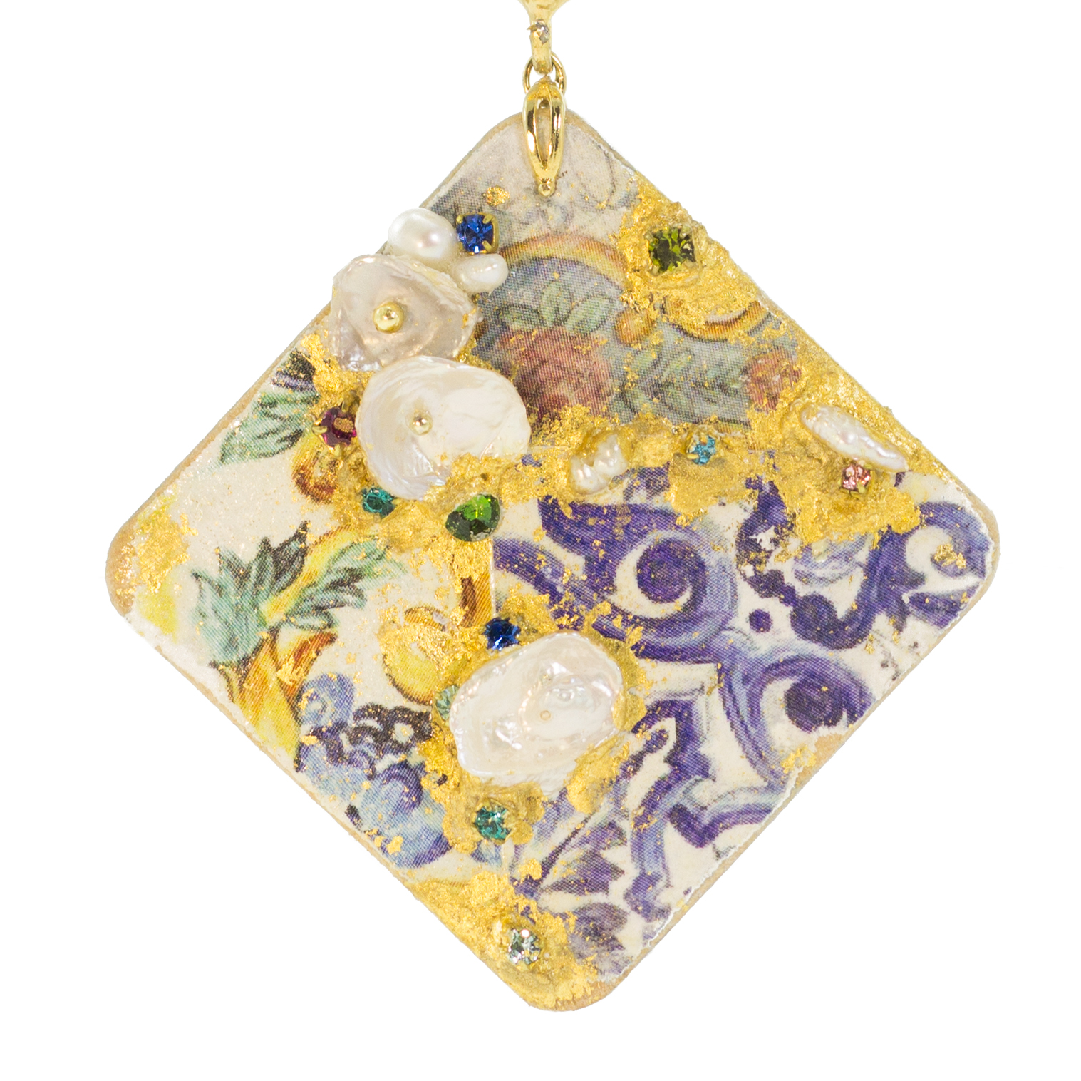 Arricchiti con perle barocche coltivate in acqua dolce, strass e swarosvki incastonati su foglia oro puro 22 kt.