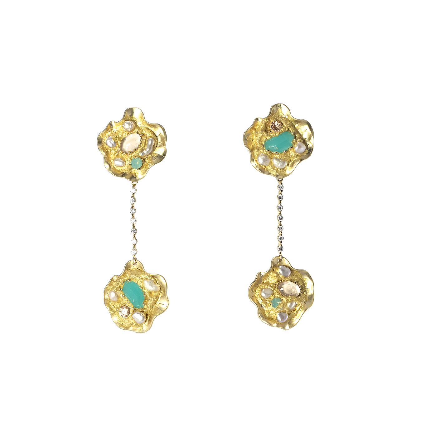 Orecchini con doppia base di ottone placcato oro con cristalli,