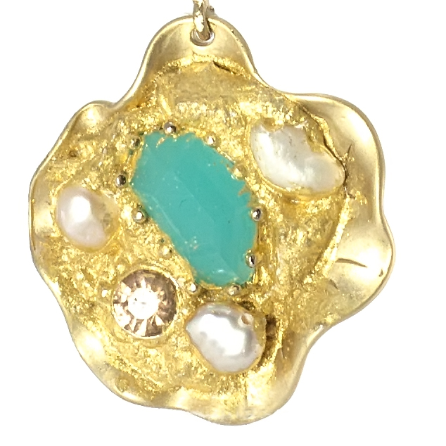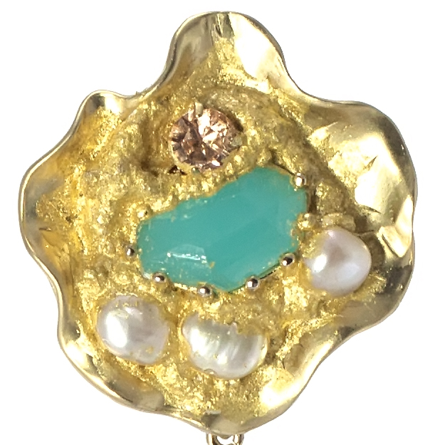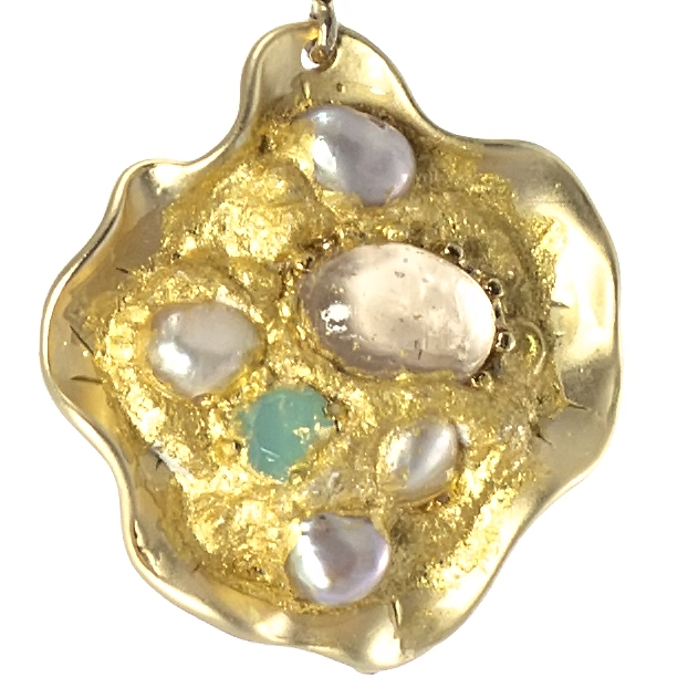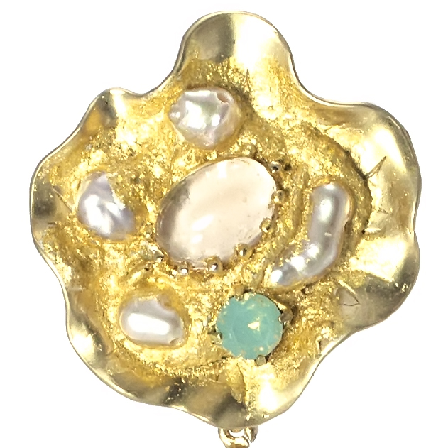 swarovski e perle d’acqua dolce incastonati su foglia oro puro 22 kt.